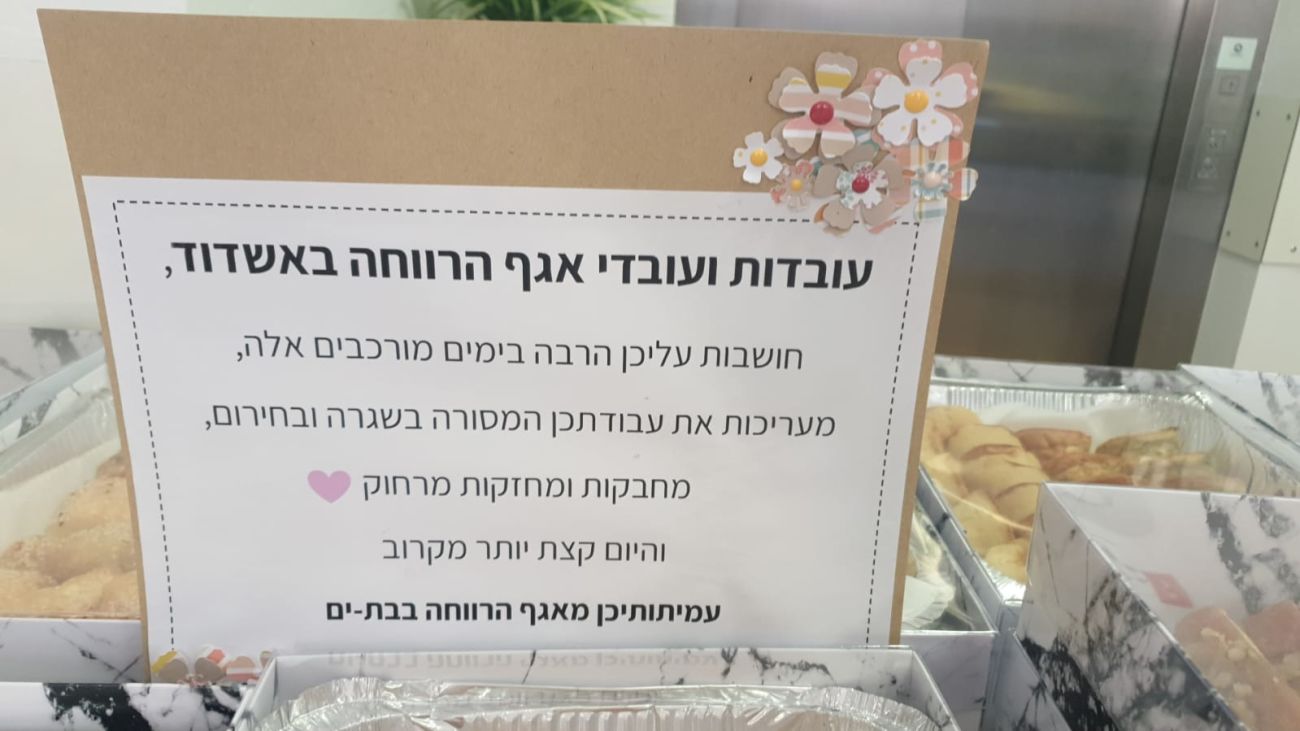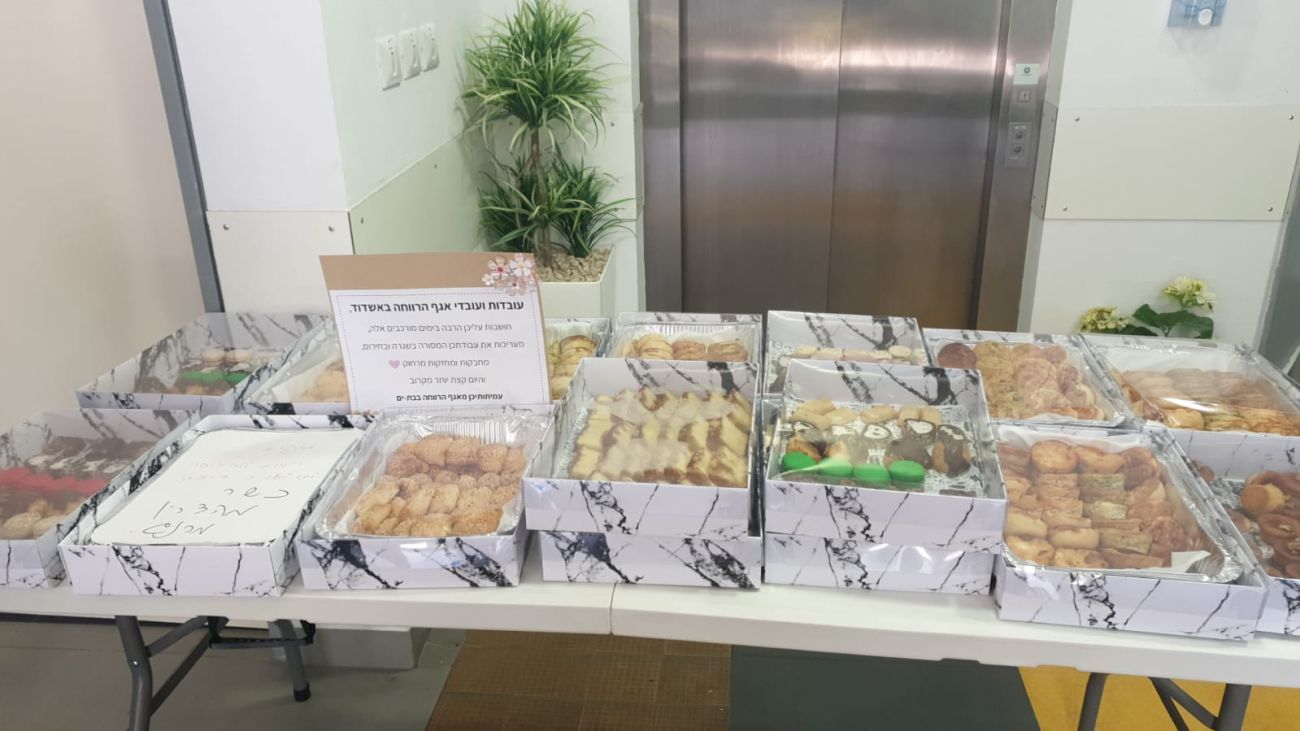 ראשי צוותים מהאגף לשירותים חברתיים של עיריית בת ים יצאו השבוע כנציגי העובדים עם פינוקים ומטעמים לעו"סים באגף לשירותים חברתים של עיריית אשדוד כאות סולידריות על עבודתם המאומצת במבצע "שומר החומות".