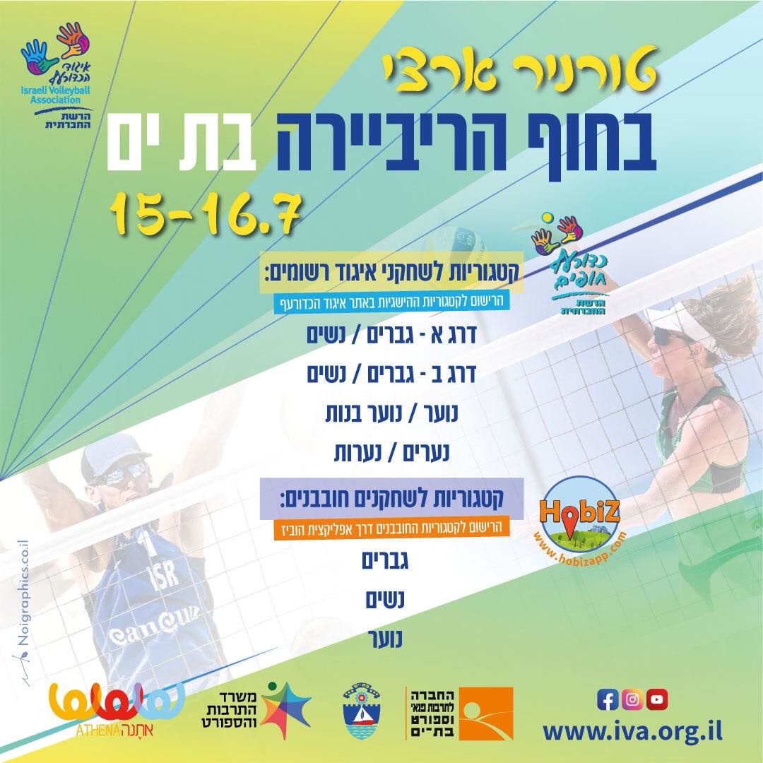 טורניר כדור-עף חופים,עם פרסים בשוויי 25,000 ש"ח, יתקיים בחוף הים בבת ים, במהלך סוף השבוע(15-16.7) בהשתתפות 200 שחקנים מכל הארץ