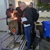 תלמידי כיתה ז'3 מבית הספר חשמונאים בבת ים, בליווי מחנך הכיתה אשר אזולאי, ציינו את חג החנוכה בדרך מיוחדת והגיעו להדליק את הנר השלישי בתחנת כיבוי האש בעיר.