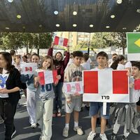 במהלך האירוע, התלמידים נשאו בגאווה את דגלי ישראל לצד דגלי המדינות שתמכו בהחלטה ההיסטורית, ושרו שירים ציוניים ברוח של אחדות, הכרת תודה ותקווה.