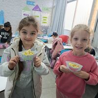 במסגרת הביקור, תלמידי שכבות א'-ב' נהנו מהרצאה מרתקת של השתיים, שעסקה בעבודה המשותפת ובתפקידם של הסופר והמאייר בתהליך יצירת ספר קריאה. התלמידים צפו בהנאה במאיירת בעת עבודתה, תוך כדי תנועה בעקבות סיפור.