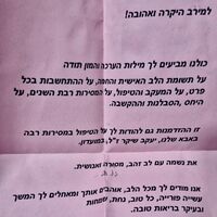 במכתבם ציינו בני המשפחה: "כולנו מביעים לך מילות הערכה והמון תודה על תשומת הלב האישית והחמה, על ההתחשבות בכל פרט, על המעקב והטיפול, על המסירות רבת השנים, על היחס, הסבלנות וההקשבה".