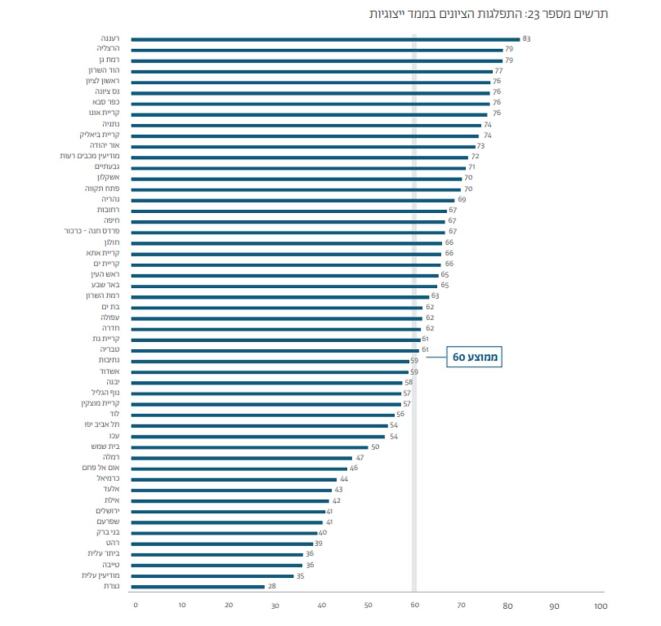 בת ים נמצאת בדירוג הכללי במקום 38 עם ציון 48