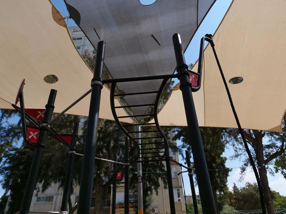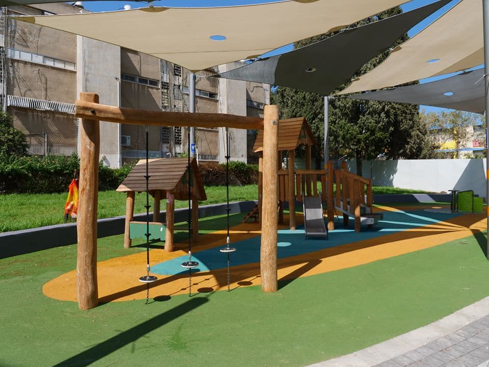 בגן המשחקים הותקנו משחקים חדשים וצלייה גדולה נפרסה על מנת לתת צל לילדים .
