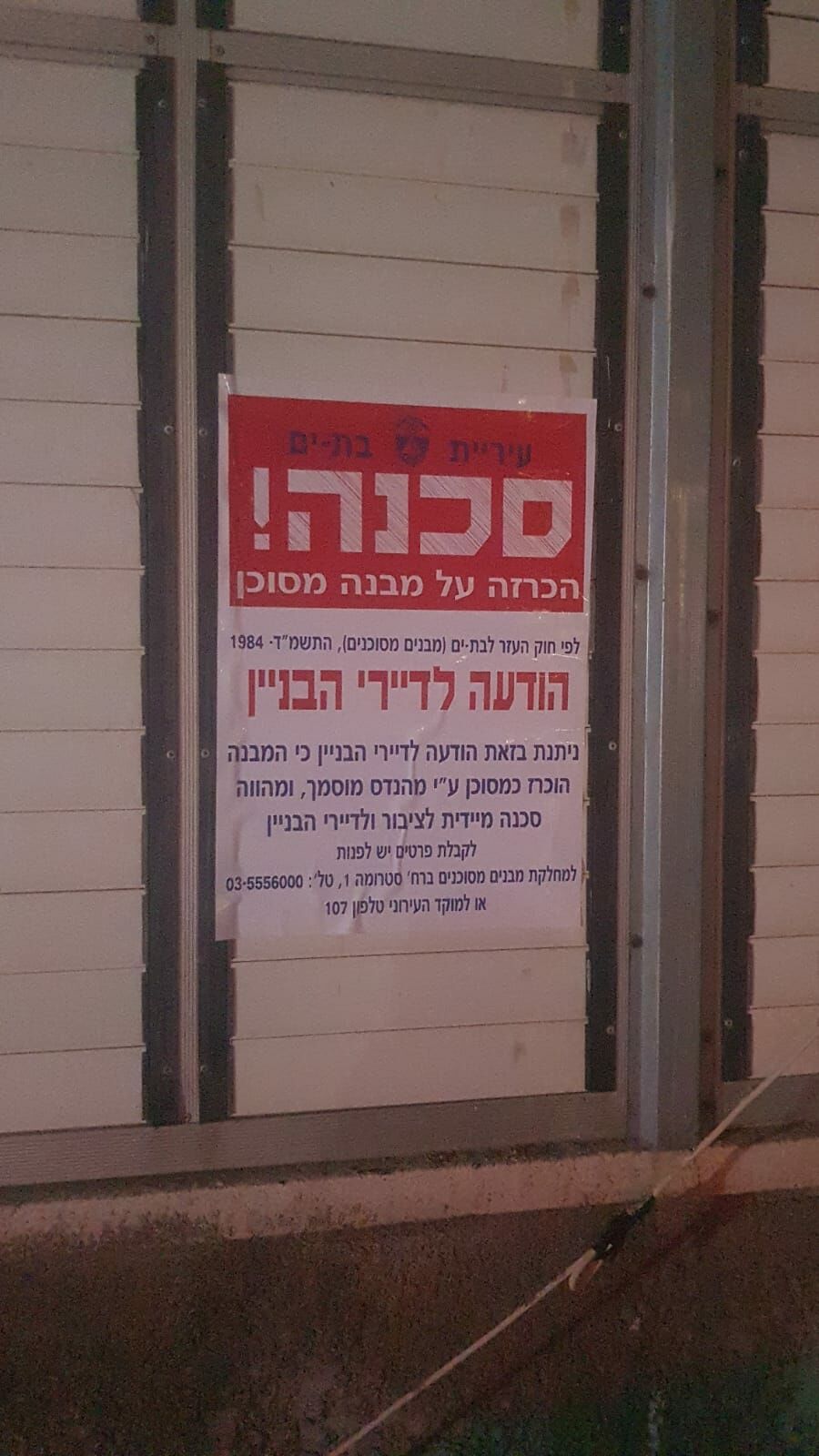 משפחות פונו מבניין מגורים בבת ים מחשש לקריסתו
