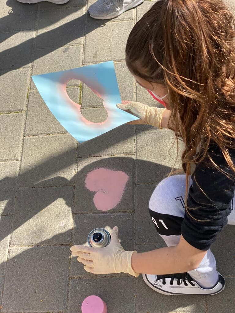מועצת התלמידים ניצלה את יום השמש שפקד את העיר הבוקר, והחלו ביצירת שבלונות וצביעתם לאורך כל השביל המוביל אל בית הספר.