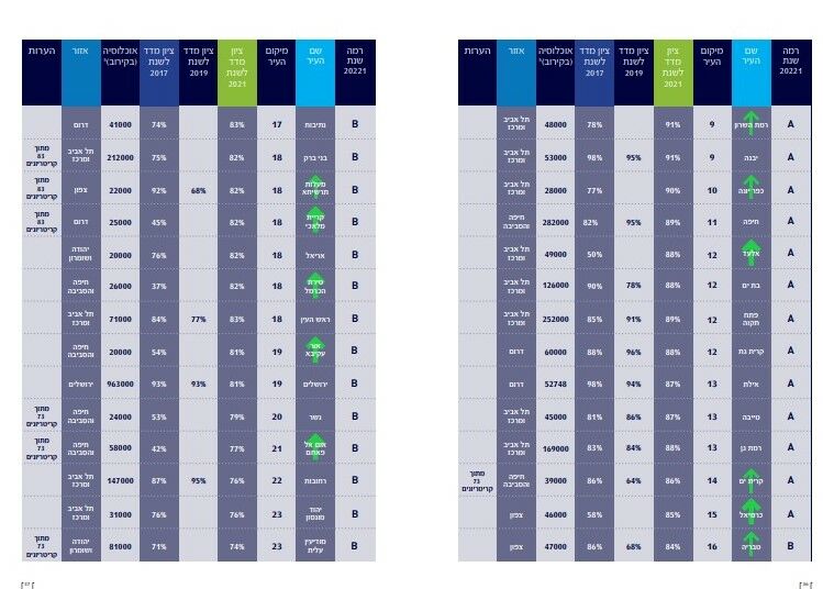 בת ים, יבנה, לוד, נס ציונה, קריית גת, אילת ורמת גן, שקיבלו את הציון A