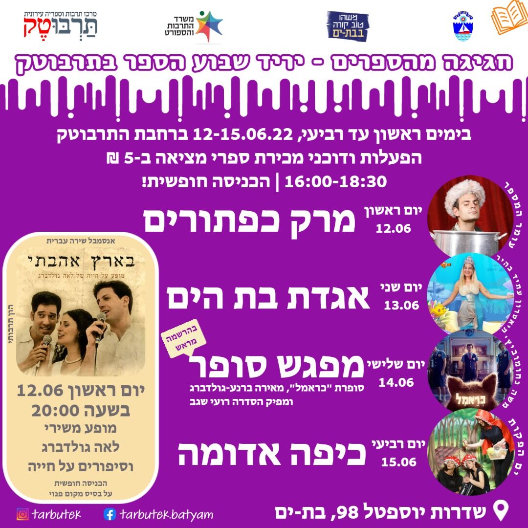 בימים א'-ד', 12-15.6.22 בין השעות 16:00-18:30 יתקיים יריד שבוע הספר בבת ים