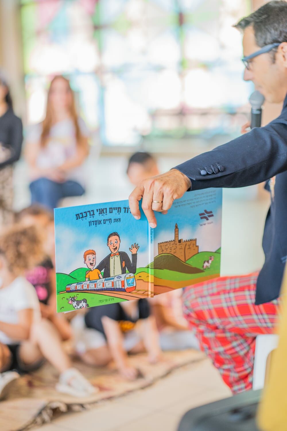 הדוד חיים חיכה לילדים במתחם תחנת הרכבת והקריא את ספרו החדש "דוד חיים ואני ברכבת" שכתב בשיתוף פעולה עם צוותי הרכבת.