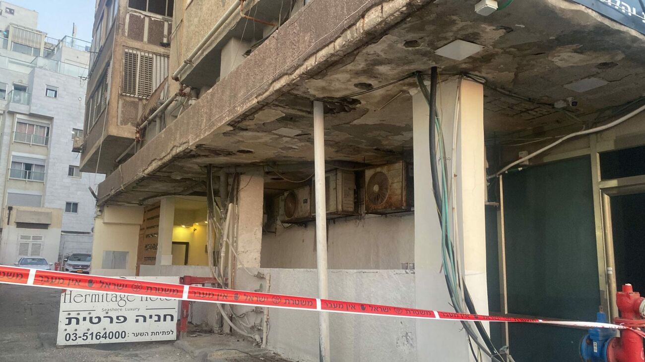 במשטרה התקבל דיווח מוקדם יותר על חתיכות בטון שנפלו מבניין מגורים ברח' דרך בן גוריון בבת ים.