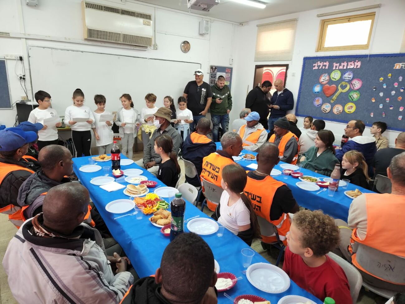 התלמידים קיבלו את פינהם של העובדים בשיר מרגש ששרו עבורם, הכינו שולחן גדול עמוס בכל טוב לארוחת בוקר וחילקו כמתנה צעיף לכל עובד, כזה שיחמם להם את החורף.