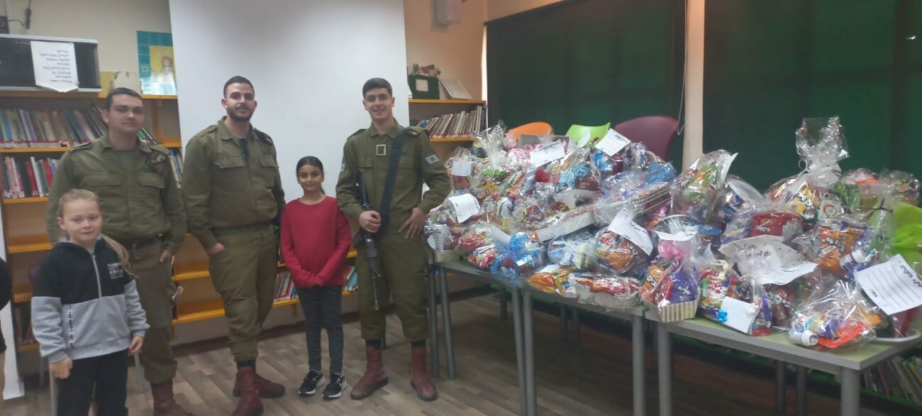 חיילי החטיבה צבעו את פניהם של הילדים בצבעי הסוואה , וקיבלו בסוף היום משלוחי מנות מפנקים שהיכנו כל תלמידי בית הספר