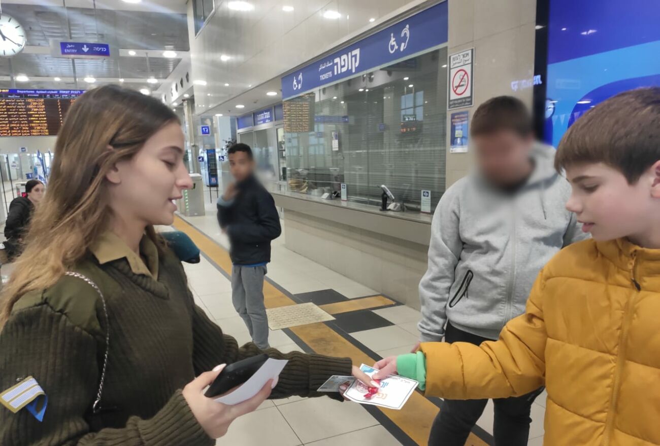תלמידי חטיבת הביניים חשמונאים בבת ים יצאו לחלוקת סוכריות ומכתב מתוק עבור העוברים ושבים בתחנת הרכבת, כחלק מאירועי יום המעשים הטובים