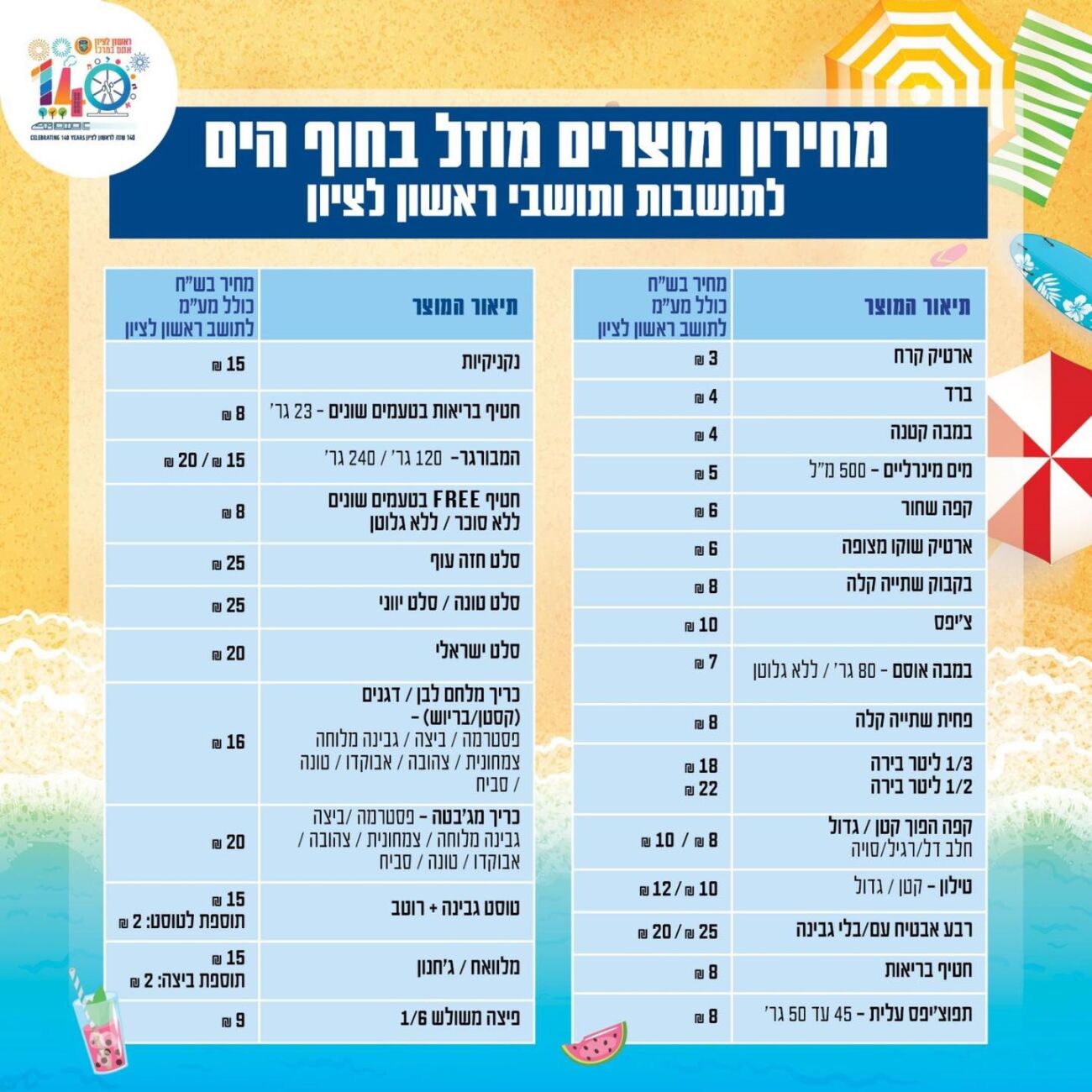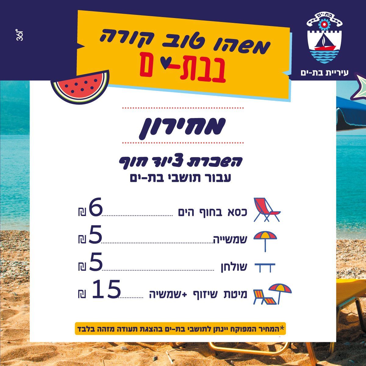 מחירי מתקני החוף לתושבי העיר - מותנה בהצגת ת.ז/ מחזיקי דיגיטל (ת"א)
