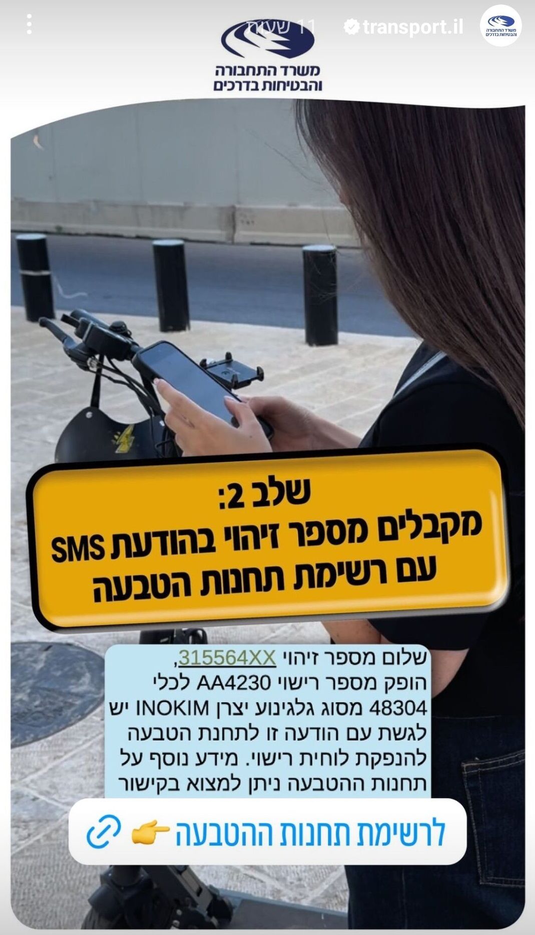 לקראת כניסתן לתוקף של התקנות המחייבות אופניים וקורקינטים חשמליים בנשיאת לוחית רישוי, משרד התחבורה יצא בקמפיין וסרטוני הסבר על תהליך הוצאת והתקנת לוחית הרישוי דרך מערכת הרישום החדשה לציבור הרוכבים. התקנות החדשות מיועדות לחזק את יכולת האכיפה נגד רוכבים הנוהגים באופן פרוע ומסכנים את הולכי הרגל ושאר משתמשי הדרך, ואת עצמם.