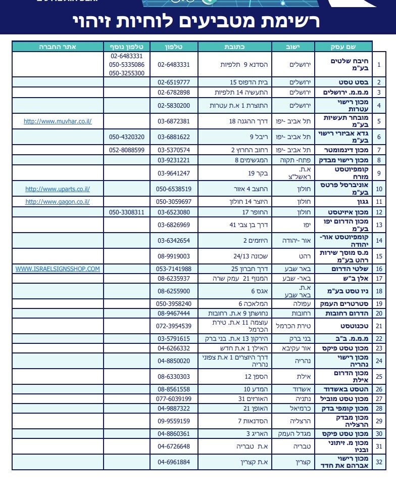 רשימת מקומות הטבעת לוחות הרישוי לתושבי המרכז