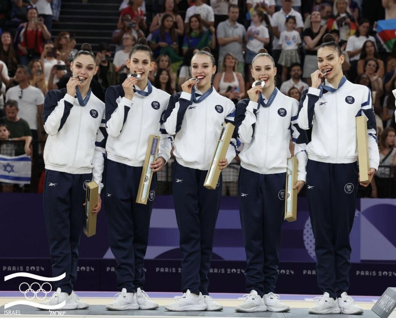 הישג ענק לבנות הנבחרת הישראלית - מתעמלות אגודת מכבי תל אביב הקפטנית רומי פריצקי ודיאנה סברצוב, יחד עם הדר פרידמן (מכבי מקפ”ת פתח תקוה), אופיר שחם (עירוני נתניה), ושני בקנוב (מכבי חיפה), שסיימו את המשחקים האולימפיים על הפודיום, לאחר שזכו בציון של 68.850 נקודות.