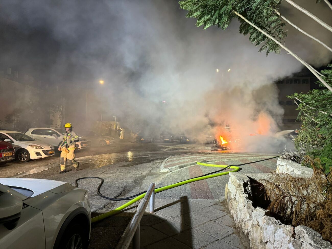 בשעה 21:20 התקבלו מספר קריאות אודות שריפת רכב בחניון פתוח ברחוב הארזים בבת ים.