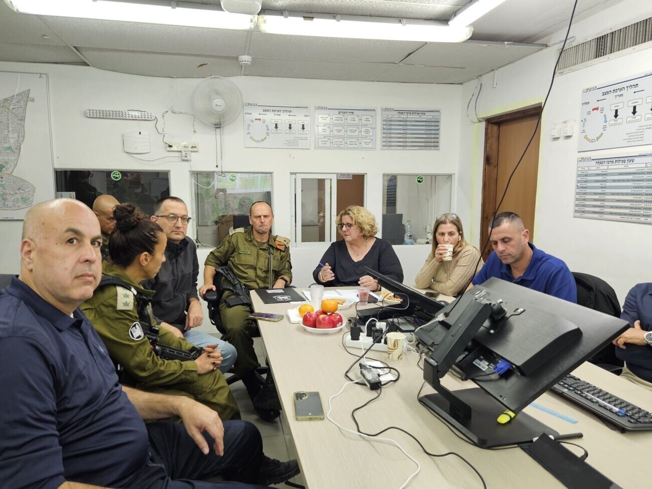 בהמשך הסיור, הגיע האלוף קלפר למרכז ההפעלה של עיריית גבעתיים, שם נפגש עם ראש העיר, רן קוניק. במהלך המפגש, סגנית ראש העיר ומחזיקת תיק החירום, אור-לי ניב, העניקה לאלוף סקירה אודות פעילות העירייה. הסקירה, שהתקיימה בעוד אזעקה נשמעת ברקע, עסקה בהיערכותה השוטפת של הרשות המקומית להתמודדות עם מצבי חירום ועם האתגרים הביטחוניים בימים אלו.