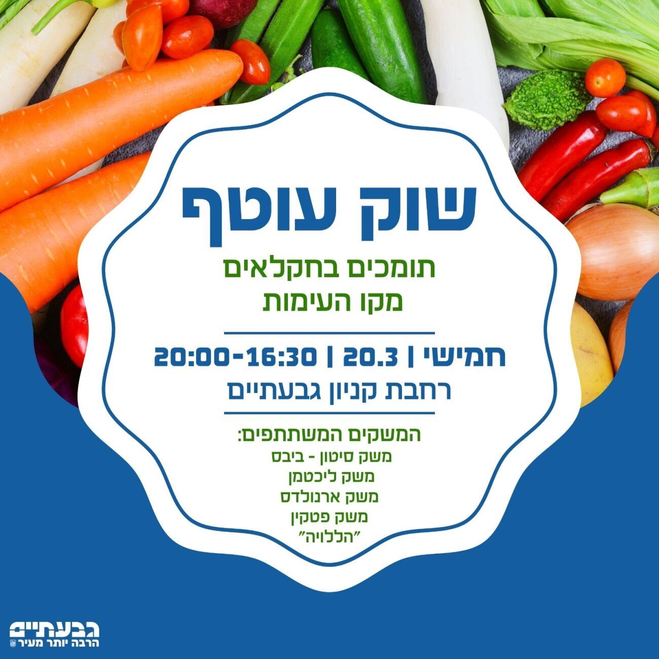 ביום חמישי הקרוב, תושבי ותושבות גבעתיים ייקחו חלק ביוזמה מרגשת לתמיכה במשקים מקו העימות בדרום. בין המשקים המשתתפים נמצא גם משק סיטון-ביבס, שהוקם לזכר הוריה של שירי ביבס ז"ל, שנרצחו בשבת השחורה. האירוע מזמין את הציבור להזמין מראש ולהשתתף בתמיכה חשובה זו.