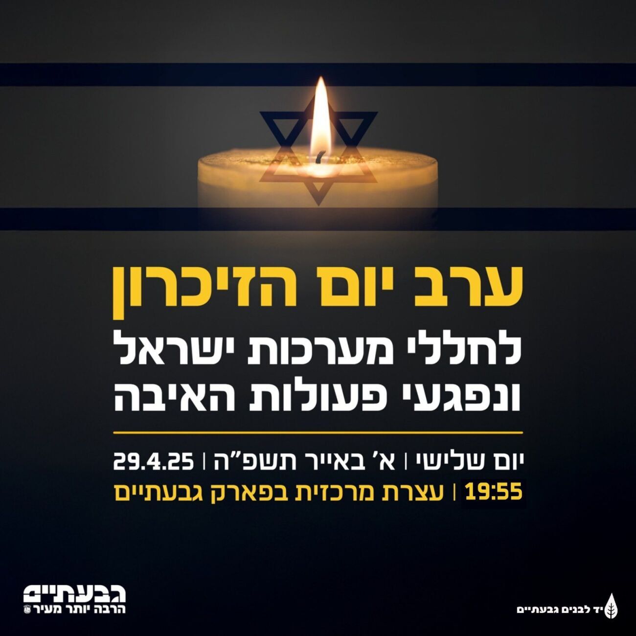 עצרת יום הזיכרון תתקיים בפארק גבעתיים בערב יום הזיכרון (יום ג'), ולא בגן הזיכרון כפי שהיה נהוג.