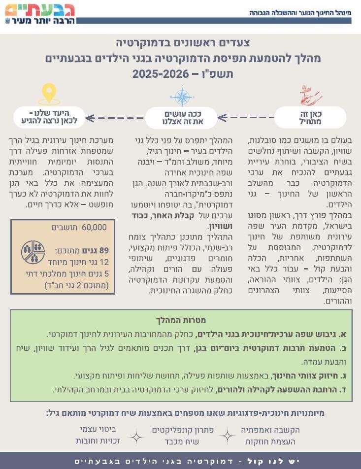 חינוך לדמוקרטיה מגיל צעיר: עיריית גבעתיים משיקה תכנית חדשה לחיזוק ערכים בכל גני הילדים בעיר