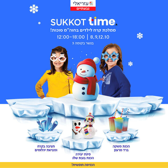 פעילויות לכל המשפחה בסוכות: "ממלכת הקרח" מגיעה לקניון עזריאלי גבעתיים בתאריכים 8-9.10 ו-12.10 עם כניסה חופשית