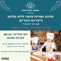 בפעילות ילמדו המשתתפים ללוש בצק ולהכין פיצות, פוקאצ'ות רכות ופיתות עבודת יד, הכל ללא גלוטן. הסדנה מיועדת לילדי כיתות א'-ב' בליווי הורה אחד, ומועברת בהנחיית שי תשובה, שף קונדיטור המתמחה באפייה ללא גלוטן. הסדנה תתקיים ביום שלישי, 28.10, בין השעות 17:00-18:30. עלות ההשתתפות הינה 50 ש"ח לילד ומלווה.