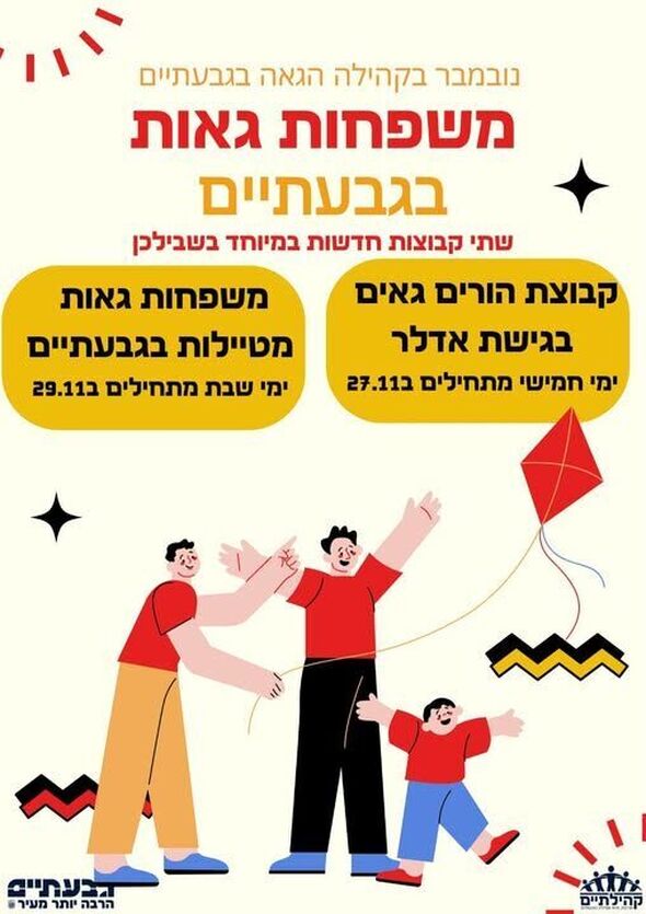 פעילויות חדשות למשפחות גאות בגבעתיים: קבוצת הורים בגישת אדלר שתחל בחמישי 27.11 וסדרת טיולים משותפים שתצא לדרך בשבת29.11