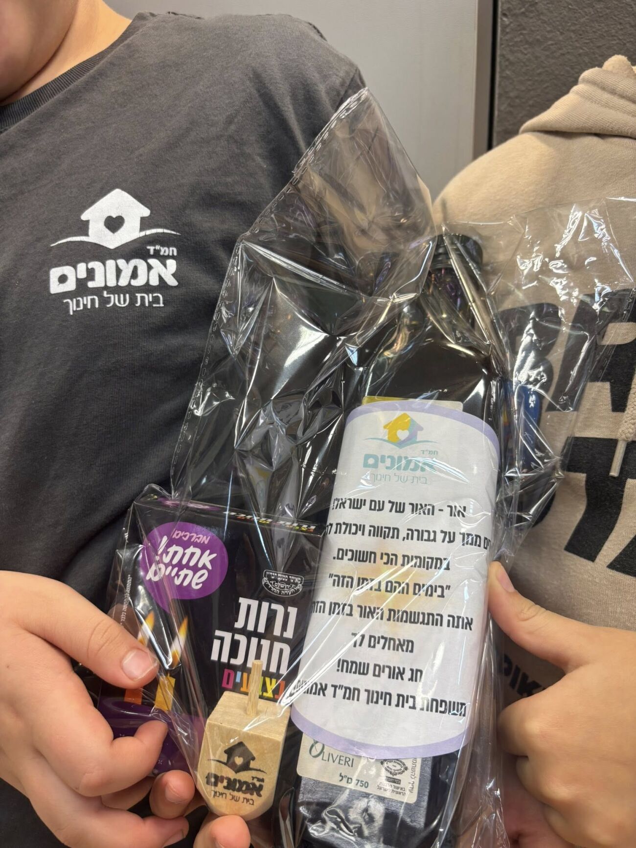 בנוסף לפעילות זו, חולק שי לכל ילדי משפחות המגויסים לקראת החג. את המארזים הכינו יעל מנגד ואורלי שמש, חברות ועדת חסד, בשם משפחת אמונים. בבית הספר ביקשו לחזק את ידיהן של משפחות המגויסים לקראת החג.