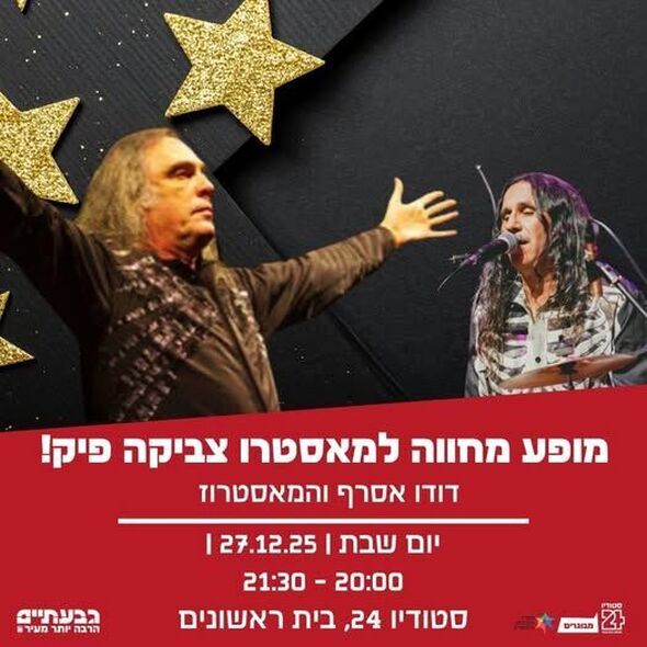 מופע מחווה למאסטרו צביקה פיק עם דודו אסרף והמאסטרוז יתקיים בבית ראשונים בגבעתיים במוצאי שבת ה-27.12