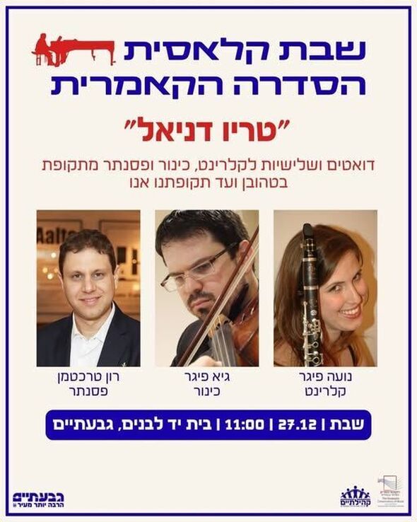 'שבת קלאסית' בגבעתיים: קונצרט מס' 2 בסדרה הקאמרית יתקיים ביום שבת 27.12 בבית יד לבנים בהשתתפות 'טריו דניאל'