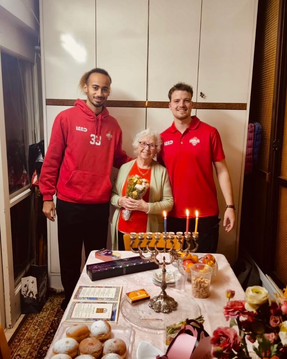 כמיטב המסורת בחג החנוכה: שחקני הפועל רמת גן-גבעתיים ביקרו שורדי שואה והדליקו נרות בשיתוף הקרן לרווחת נפגעי השואה