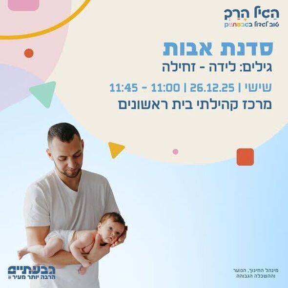המרכז הקהילתי בית ראשונים בגבעתיים יקיים סדנה מיוחדת לאבות תחת הכותרת "קשר, ויסות ומשמעות". הסדנה מיועדת להעניק כלים פרקטיים ופשוטים להתמודדות עם החודשים הראשונים לחיי התינוק.