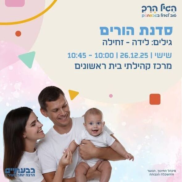 סדנת הורים והתפתחות לתינוקות בהנחיית מרפאה בעיסוק תתקיים ביום שישי ה-26.12 בבית ראשונים בגבעתיים
