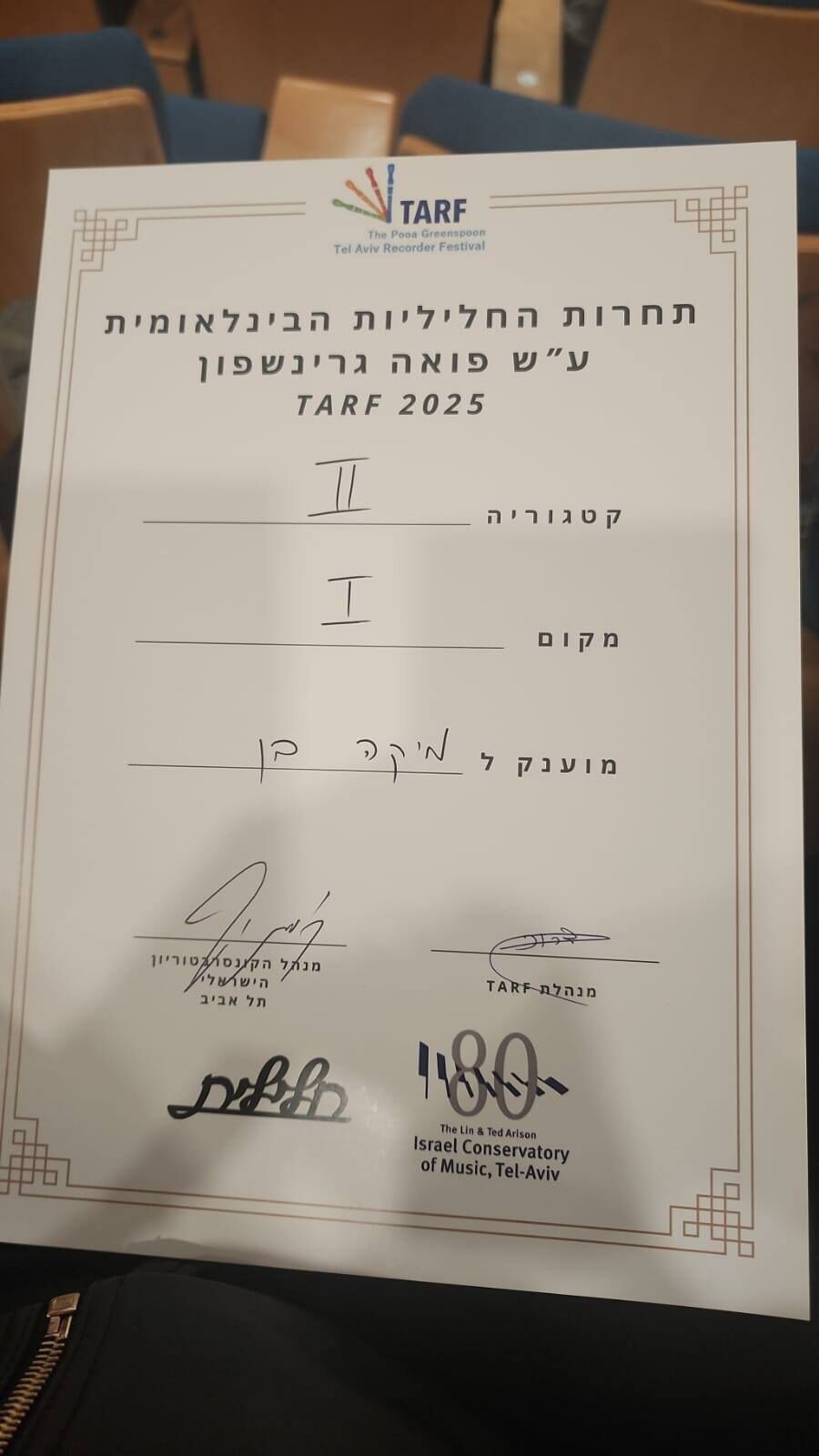 תלמידי הקונסרבטוריון העירוני בגבעתיים זכו במקומות הראשונים בתחרות החליליות הבינלאומית