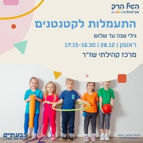 התעמלות לקטנטנים במרכז קהילתי שז"ר בגבעתיים: מפגש חוויתי המשלב תנועה, יוגה וספורט לחיזוק הגוף ופיתוח קואורדינציה לגילאי שנה עד שלוש