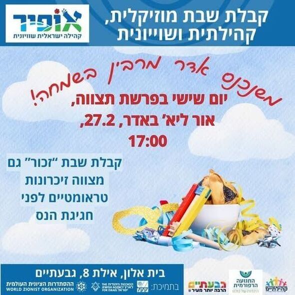 קהילת אופיר - קהילה ישראלית שוויונית בגבעתיים תקיים ביום שישי, ה-27 בפברואר, קבלת שבת 'זכור' קהילתית, מוזיקלית ושוויונית, האחרונה לפני חג הפורים.