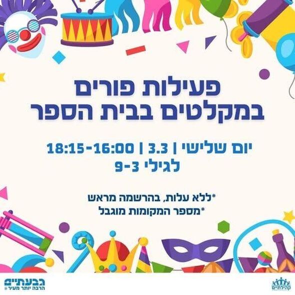 חגיגות פורים מוגנות בגבעתיים: פעילויות חינמיות במקלטי בתי הספר ב-3.3