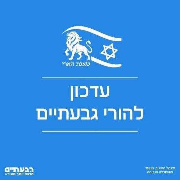 עיריית גבעתיים עדכנה כי בהמשך למצב הביטחוני והשלכותיו על פעילות מסגרות החינוך בתקופת מלחמת "שאגת הארי", לא תתבצע גביית תשלומים לצהרונים בעיר עבור חודש אפריל 2026.