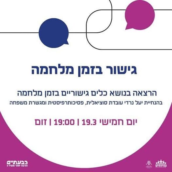 היום (19.3) בזום: הרצאה בנושא כלים גישוריים ושמירה על יחסים בזמן מלחמה מטעם מרכז הגישור העירוני בגבעתיים