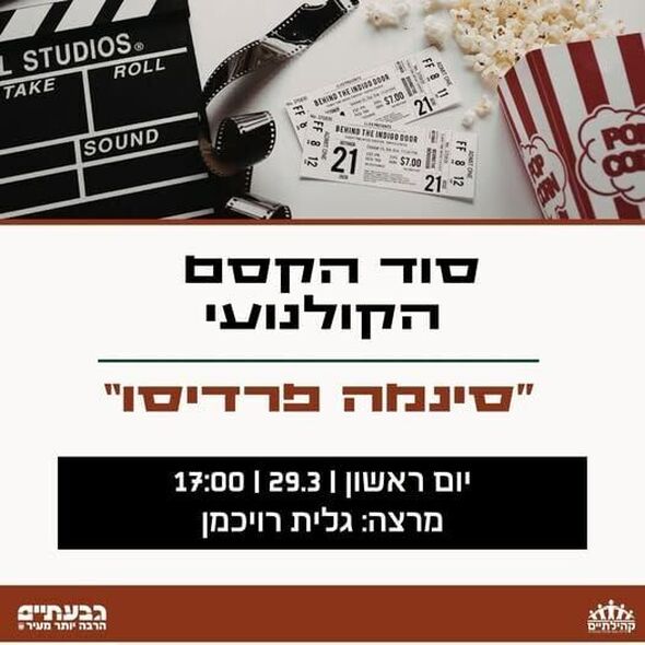 אוהבי הקולנוע מוזמנים למפגש מקוון מיוחד במסגרת הסדרה "סוד הקסם הקולנועי", אשר יוקדש ליצירת המופת "סינמה פרדיסו". המפגש, פרי יוזמת רשת "קהילתיים" בגבעתיים, ייערך ביום ראשון, 29 במרץ 2026, בין השעות 17:00 ל-18:30.