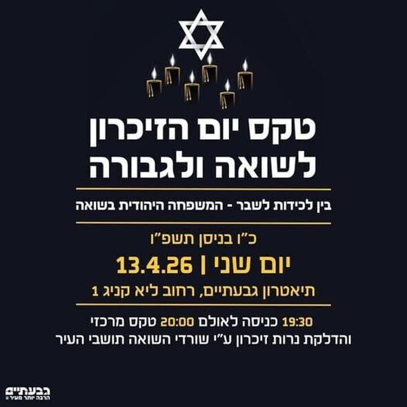 גבעתיים: הטקס המרכזי ליום הזיכרון לשואה ולגבורה ייערך ב-13.4.26 בתיאטרון העירוני