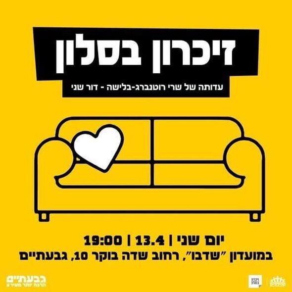 היום, 13 באפריל: אירוע "זיכרון בסלון" במרכז קהילתי שדה בוקר בגבעתיים עם עדותה של שרי רוטנברג-בלישה