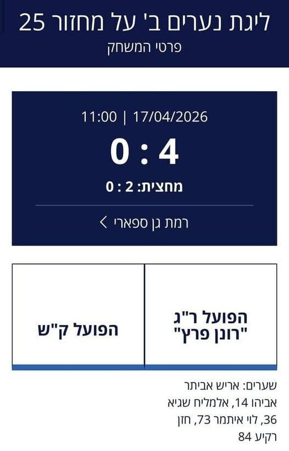 ניצחון מוחץ בספארי: קבוצת נערים ב' של הפועל רמת גן הביסה 0:4 את הפועל קריית שמונה