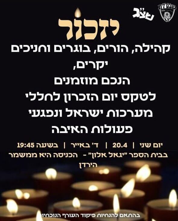 שבטי צופי גבעתיים מזמינים את הקהילה, ההורים, הבוגרים והחניכים להשתתף בטקס יום הזיכרון לחללי מערכות ישראל ונפגעי פעולות האיבה.