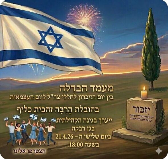 מעמד הבדלה בין יום הזיכרון ליום העצמאות ייערך בגן רבקה בגבעתיים ב-21.4.2026