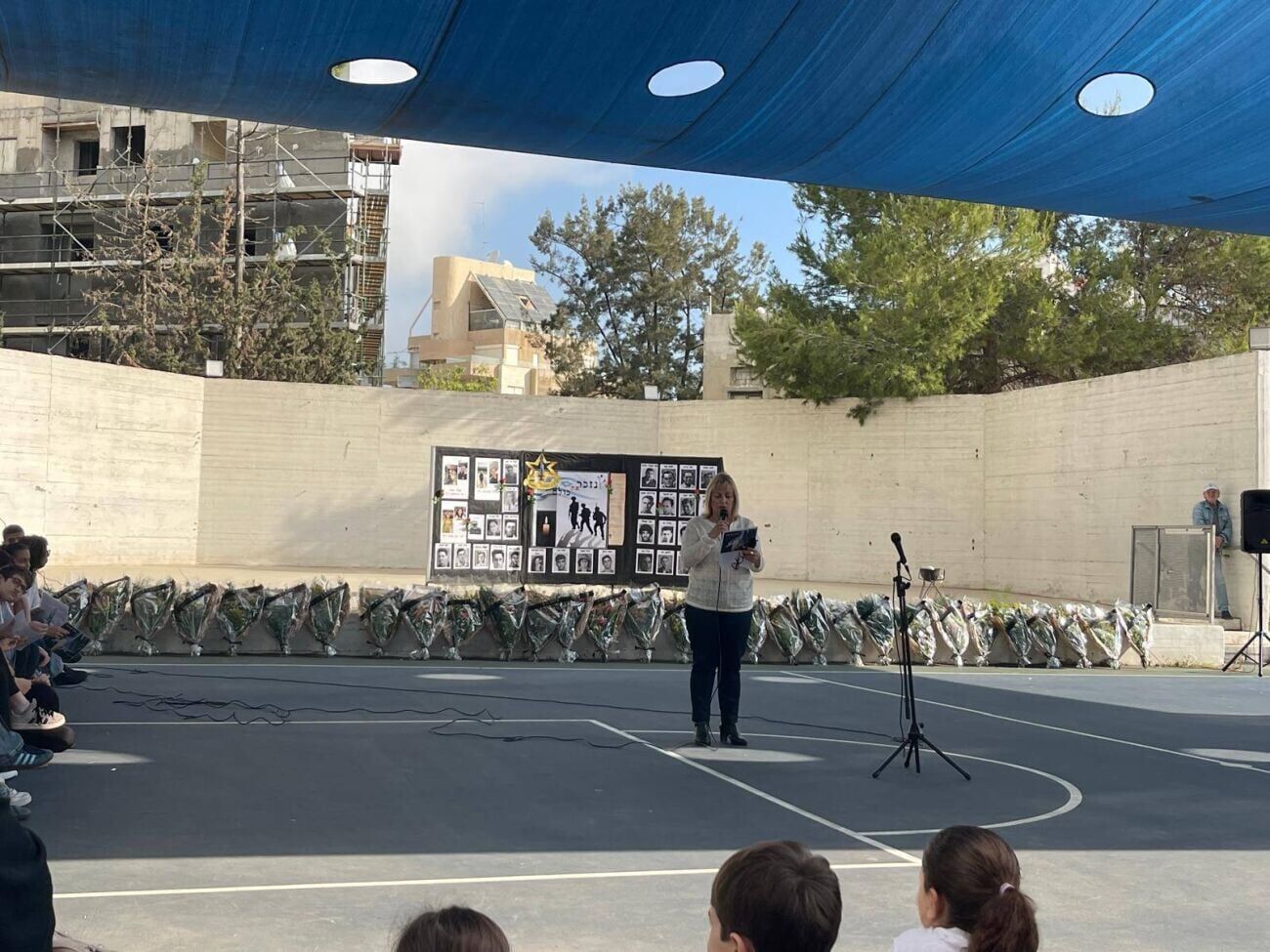 טקס יום הזיכרון בבית הספר בורוכוב בגבעתיים: המנהלת שיתפה את סיפור נפילת אחיה במלחמת שלום הגליל אל מול משפחות שכולות ונציגי העירייה