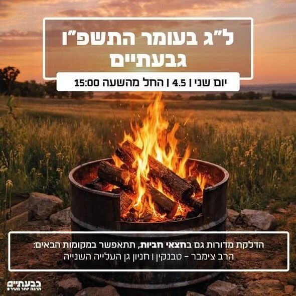 היערכות לל"ג בעומר בגבעתיים: אלו המוקדים המאושרים וההנחיות לחג ביום שני ה-4.5