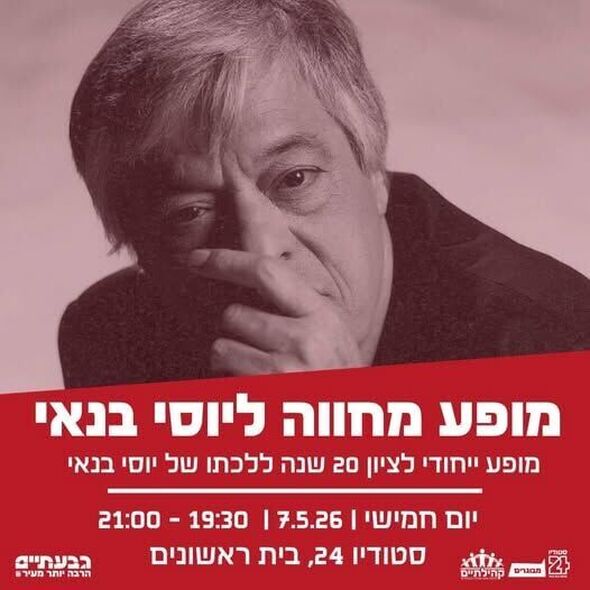 מופע מחווה לציון 20 שנה ללכתו של יוסי בנאי יתקיים בגבעתיים בתאריך ה- 7.5.26